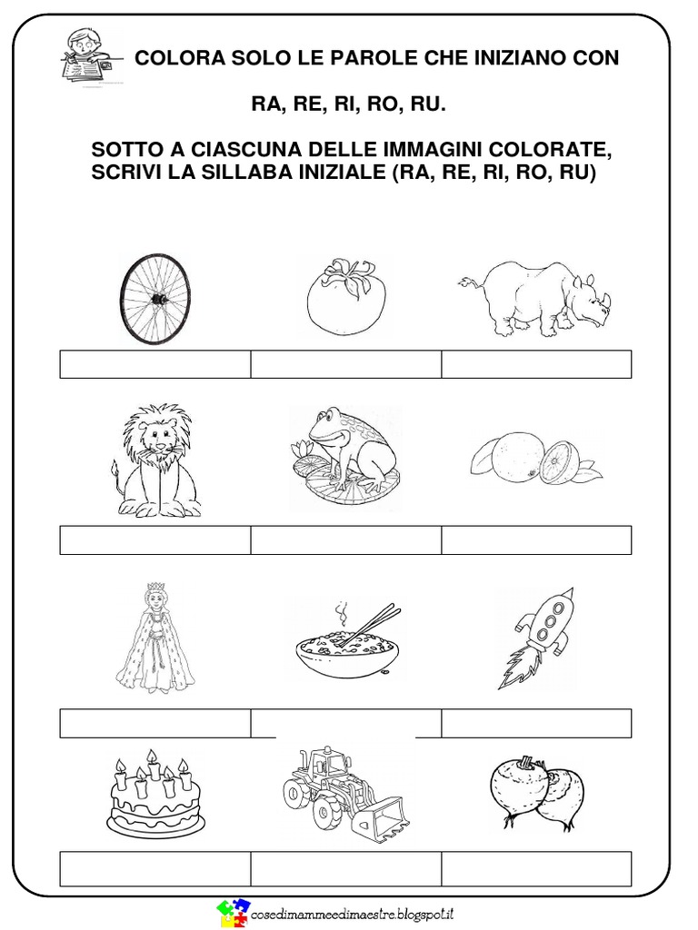 for "Schede Parole Bisillabe Piane Con Immagini : Le Rane Ra Re Ri Ro Ru"